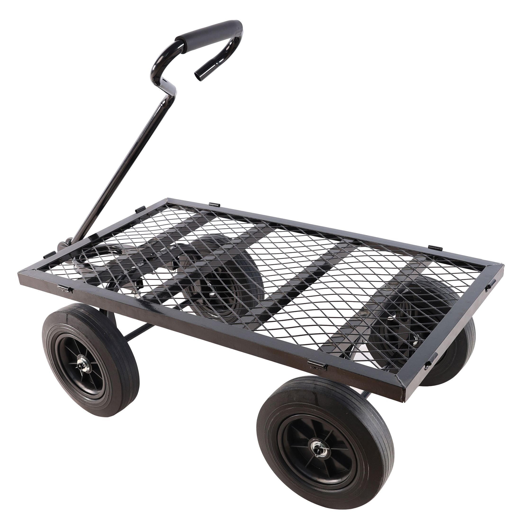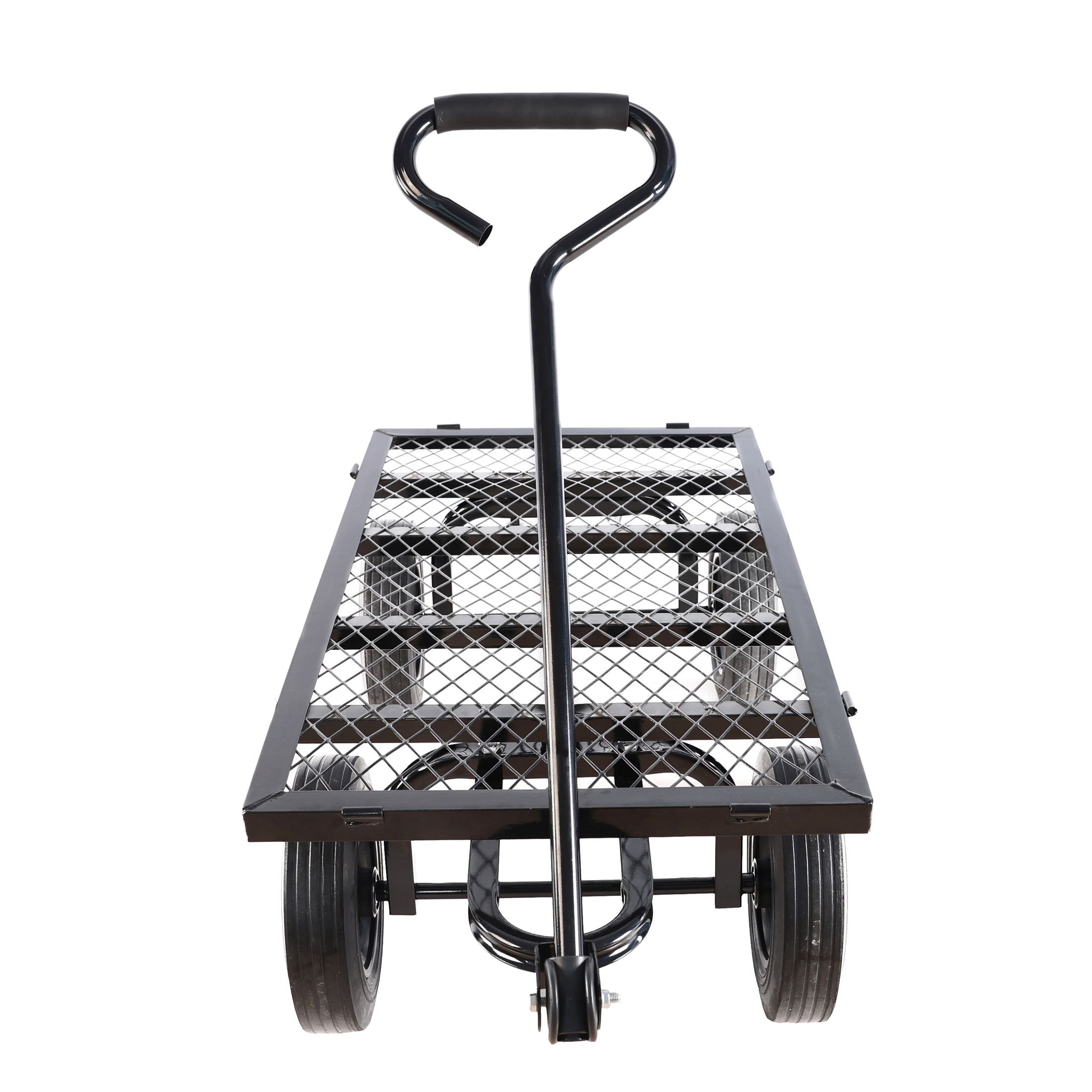 (Black solid wheels wagon cart) Solid wheels Tools cart Wagon Cart Garden cart trucks make it easier to transport firewood