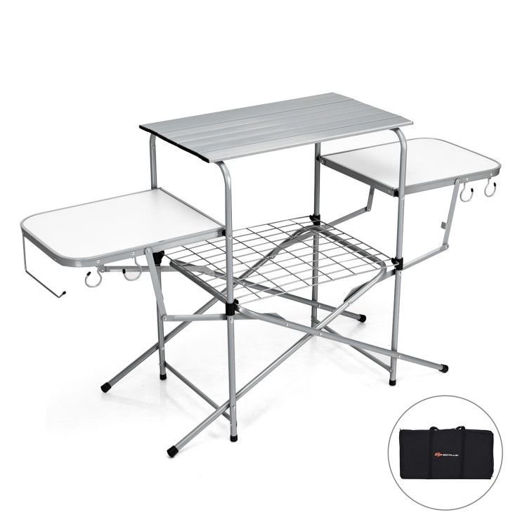 ● Large Space: Large top surface area, two side tables and lower shelf of this outdoor table offer enough space for all of your cooking gear and it's ideal for placing food and condiments. Comes along with carry bag for storage at home.