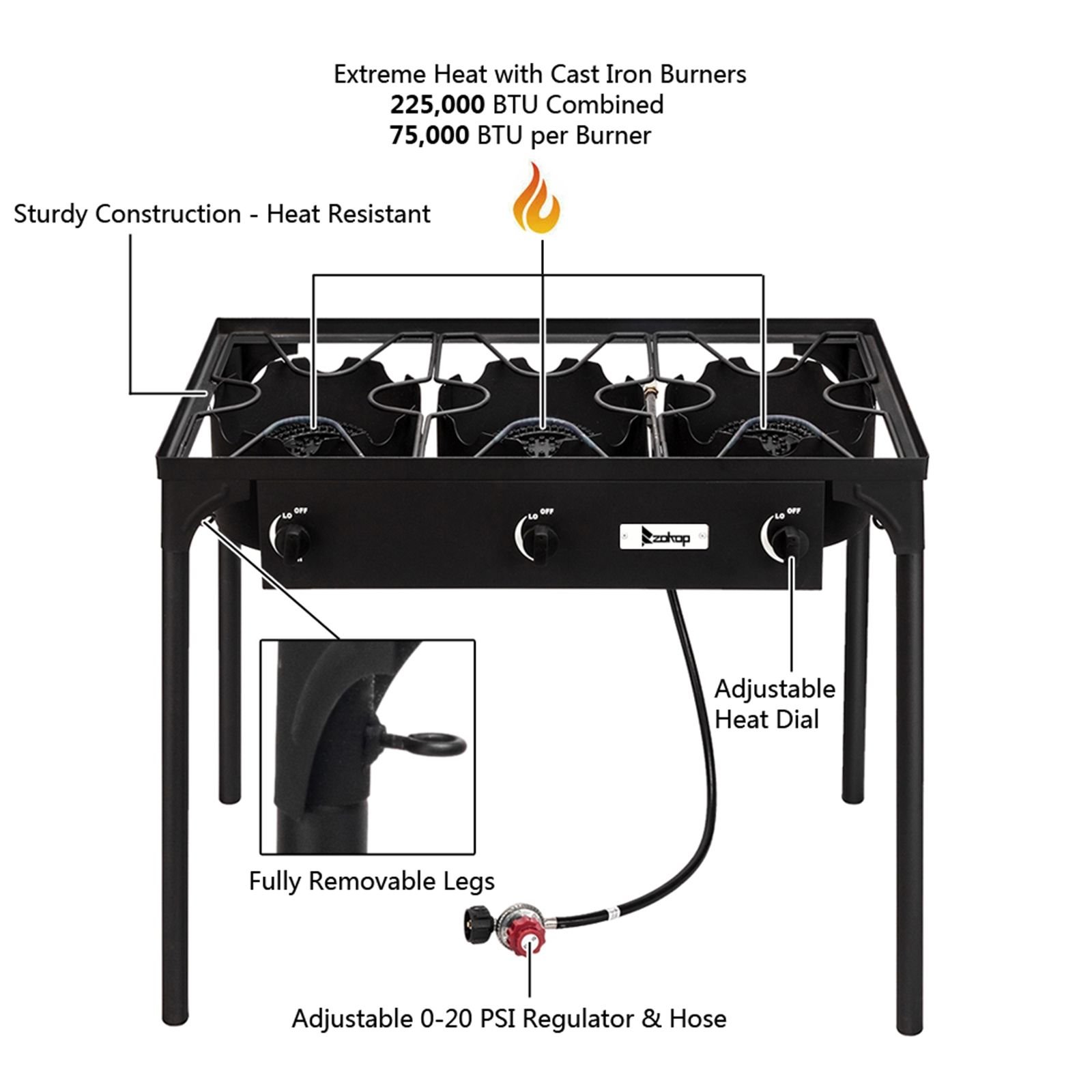 5. 0-20 psi adjustable make cook faster and cleaner than other standard propane burners