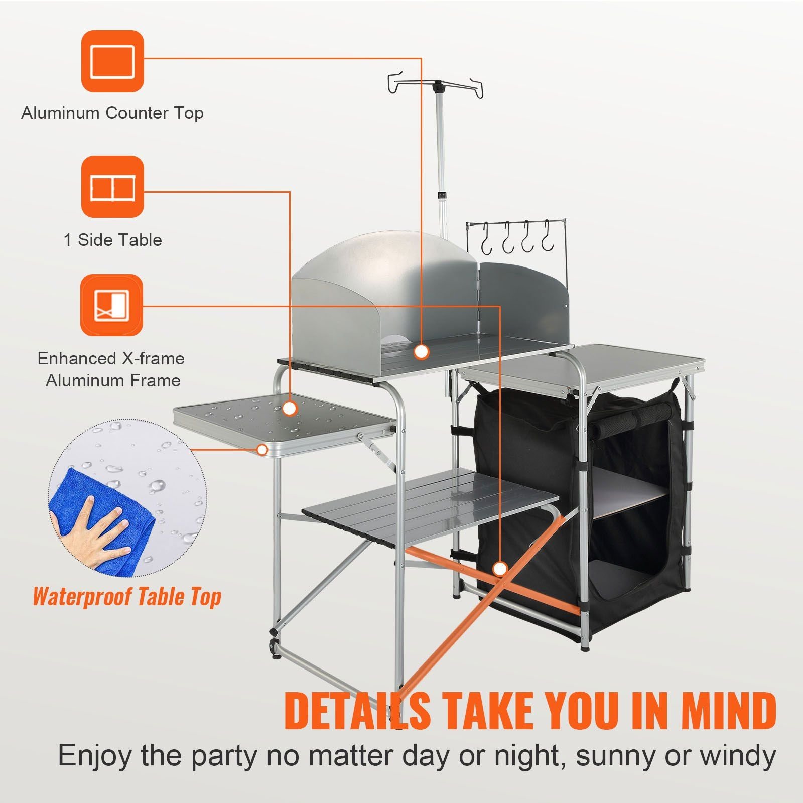 Home > VEVOR Camping Kitchen Table, Folding Outdoor Cooking Table with Storage Carrying Bag, Aluminum Cook Station 1 Cupboard & Detachable Windscreen